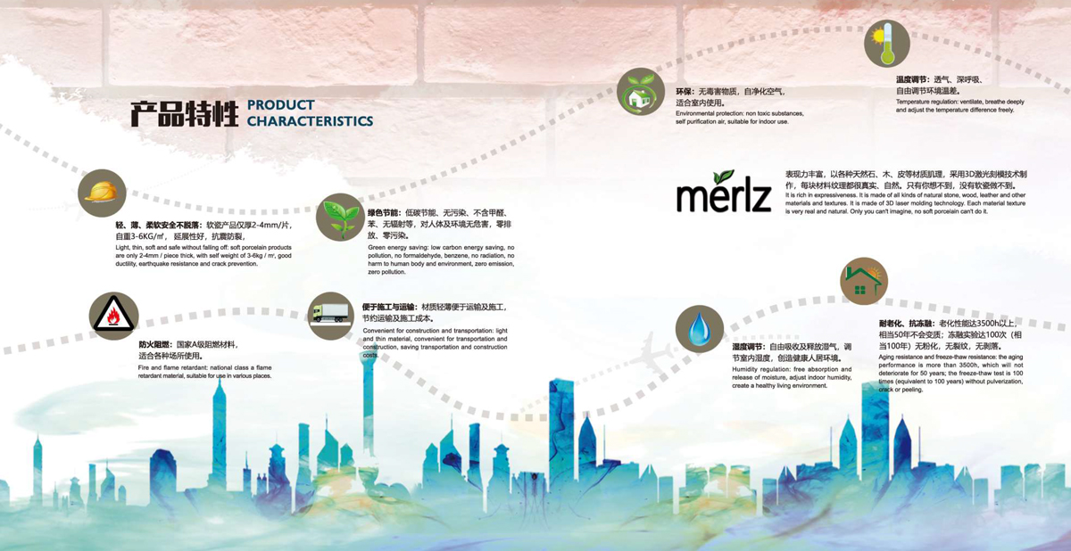 由美筑企業(yè)開發(fā)生產(chǎn)的新型建筑裝飾材料我們稱為“軟瓷”,軟瓷的專業(yè)學(xué)術(shù)名稱叫做“改性無機(jī)粉復(fù)合建筑飾面片材”,是一種充滿科技含量的安全、耐久、低碳、可循環(huán)的建筑裝飾材料。
